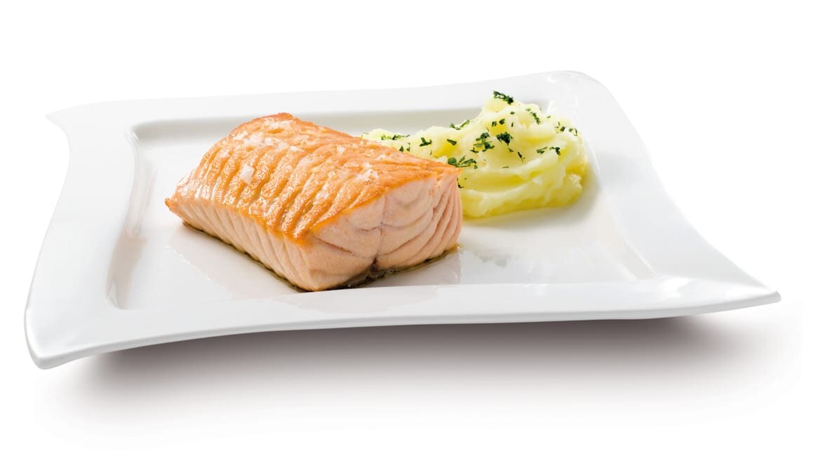 Salar los lomos de salmón, untar ligeramente de aceite y hacer en plancha ó sartén bien caliente durante 2 minutos aproximadamente, por cada lado.